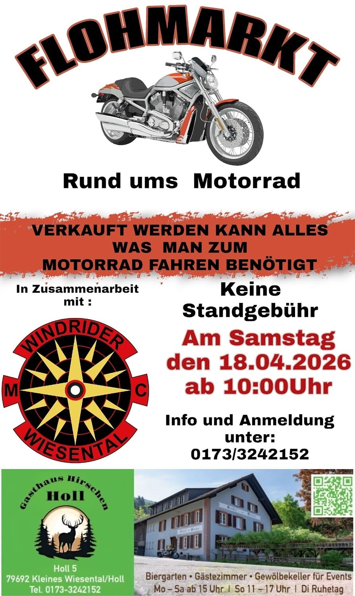Motorrad Flohmarkt in Holl Samstag 18.4. 2026 Flyer