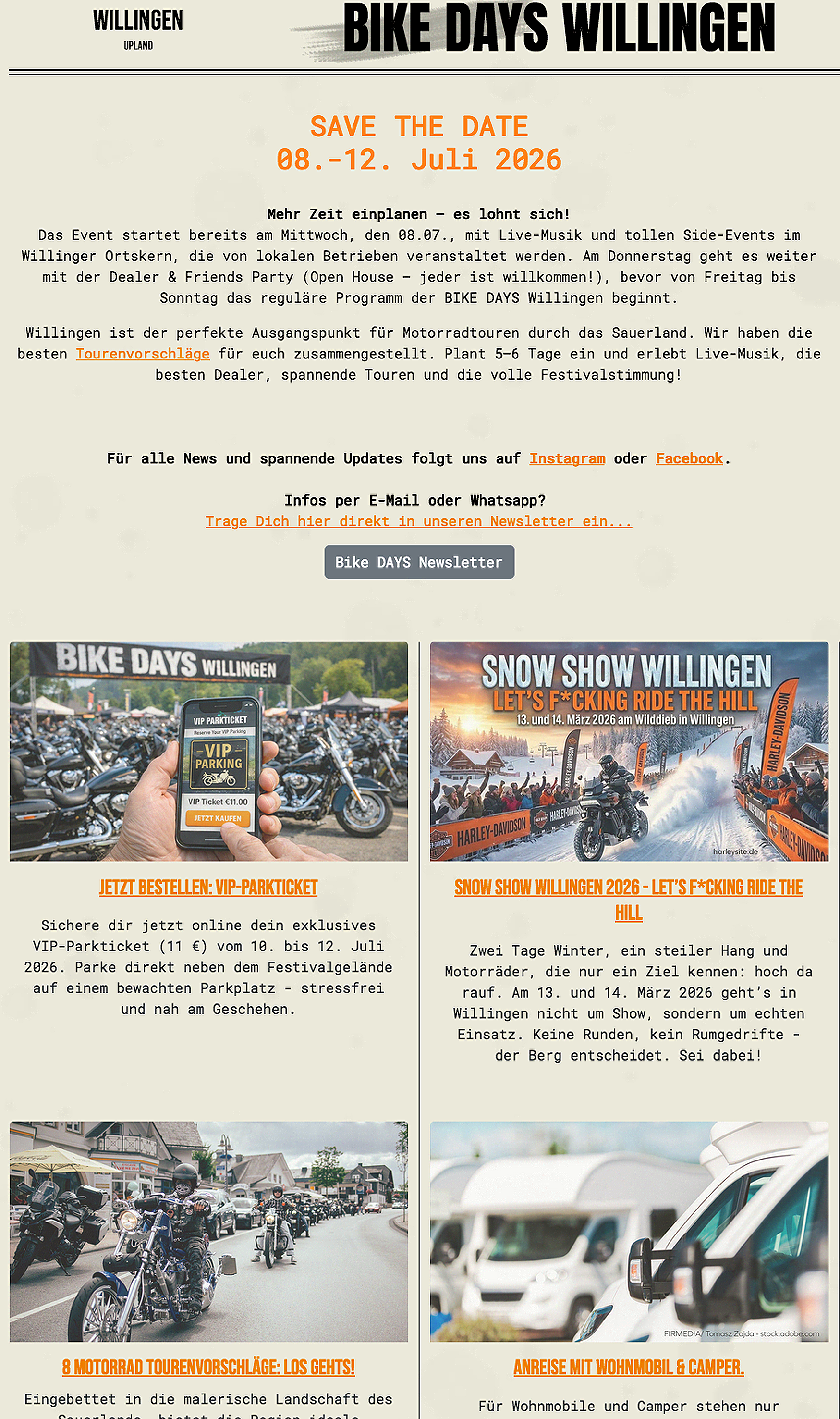Einige bekannte Motorradtreffen für 2026 sind geplant