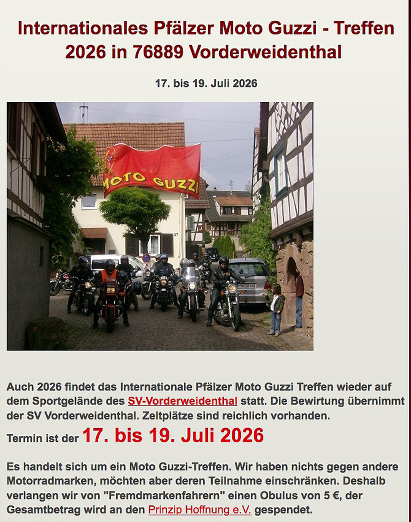 Internationale Moto Guzzi Treffen in Kirchberg am Wechsel ist geplant für den 03. und 04. Juli 2026